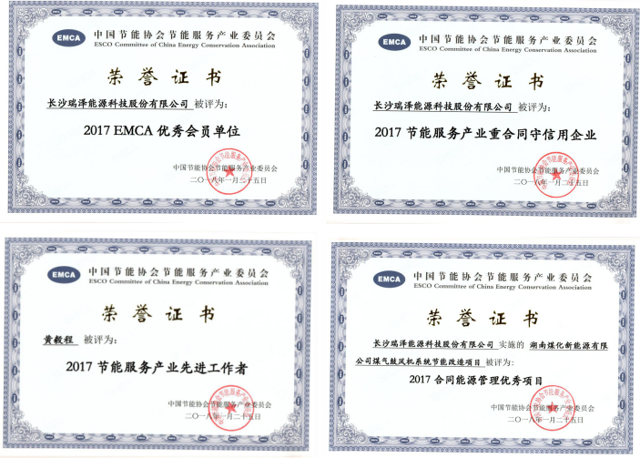 會上,瑞澤能源再次榮獲“2017年度重合同守信用企業(yè)”“EMCA優(yōu)秀會員單位”和“2017合同能源管理優(yōu)秀示范項目。公司技術(shù)總監(jiān)榮獲“2017年度節(jié)能服務(wù)產(chǎn)業(yè)先進工作者稱號”。
